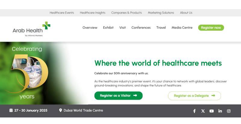 의료기기 업계에 따르면 뷰노, 웨이센, 뉴로핏 등 국내 AI 의료기기 기업이 27일(현지시각)부터 30일까지 아랍에미리트(UAE) 두바이 세계무역센터에서 열리는 아랍헬스에 참가한다. 아랍헬스는 중동 지역 최대 규모의 의료기기 전시회로, 올해 50회째다. 이번 행사에는 180여 개 국가의 3400개 이상의 기업이 참가할 예정이다.